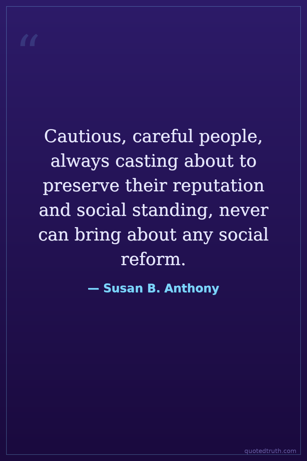 Cautious, careful people, always casting about to preserve their reputation and social standing, never can bring about any social reform.