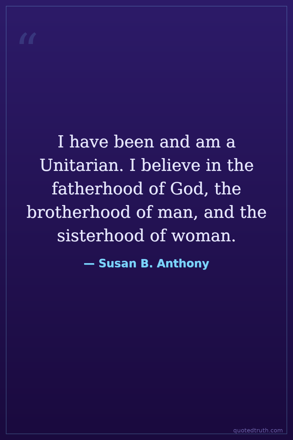 I have been and am a Unitarian. I believe in the fatherhood of God, the brotherhood of man, and the sisterhood of woman.