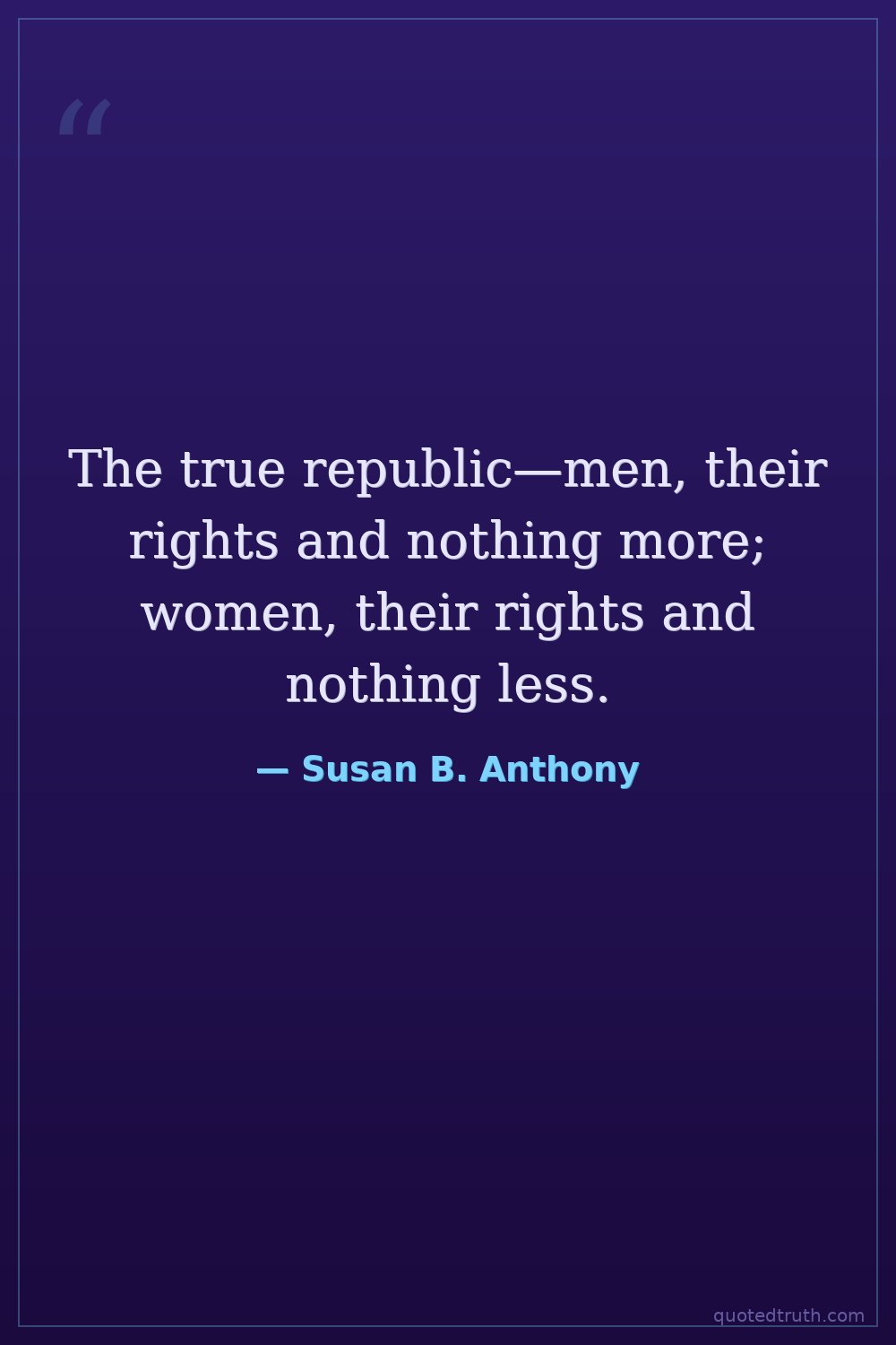 The true republic—men, their rights and nothing more; women, their rights and nothing less.