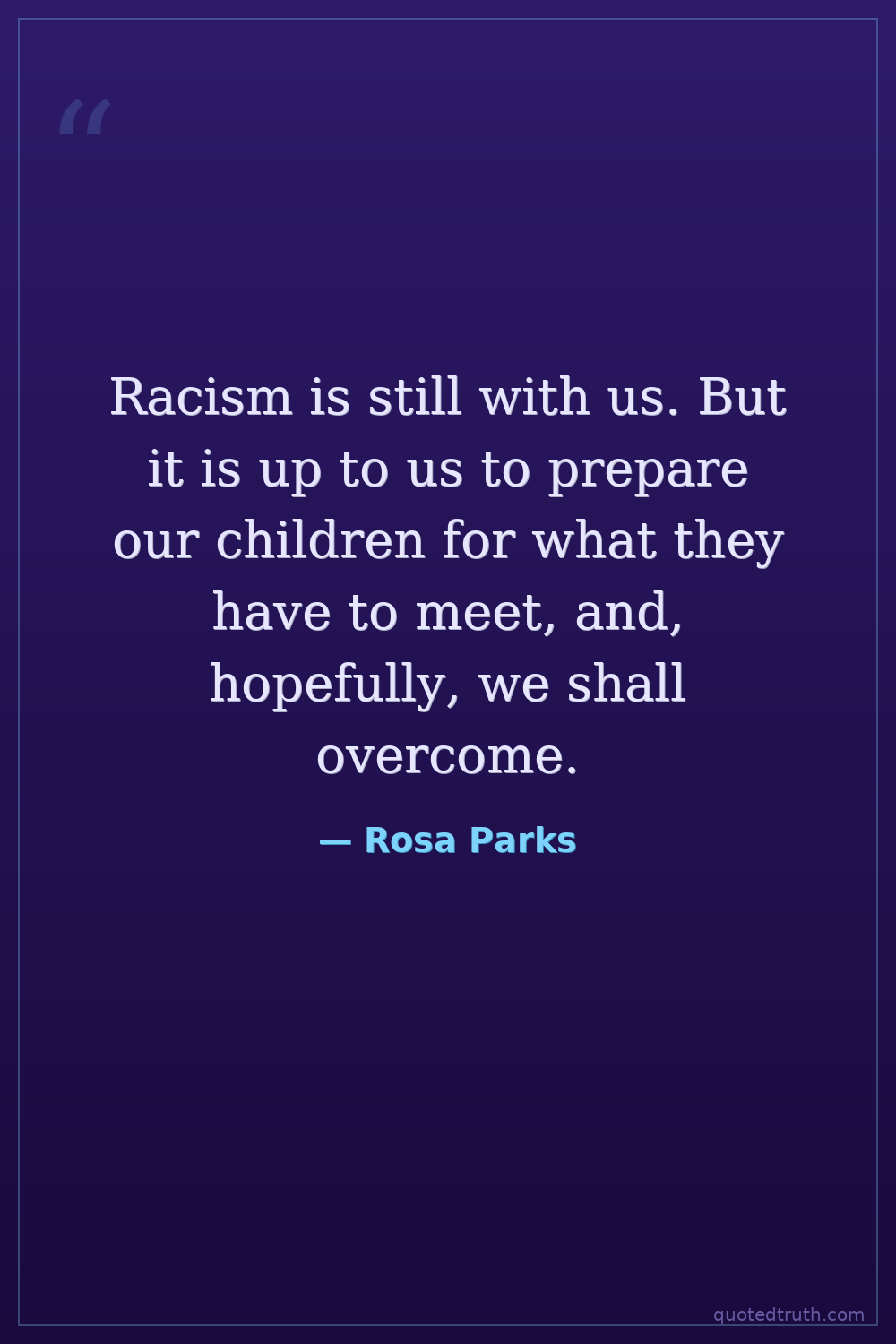 Racism is still with us. But it is up to us to prepare our children for what they have to meet, and, hopefully, we shall overcome.