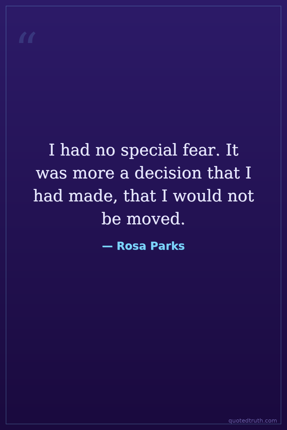 I had no special fear. It was more a decision that I had made, that I would not be moved.
