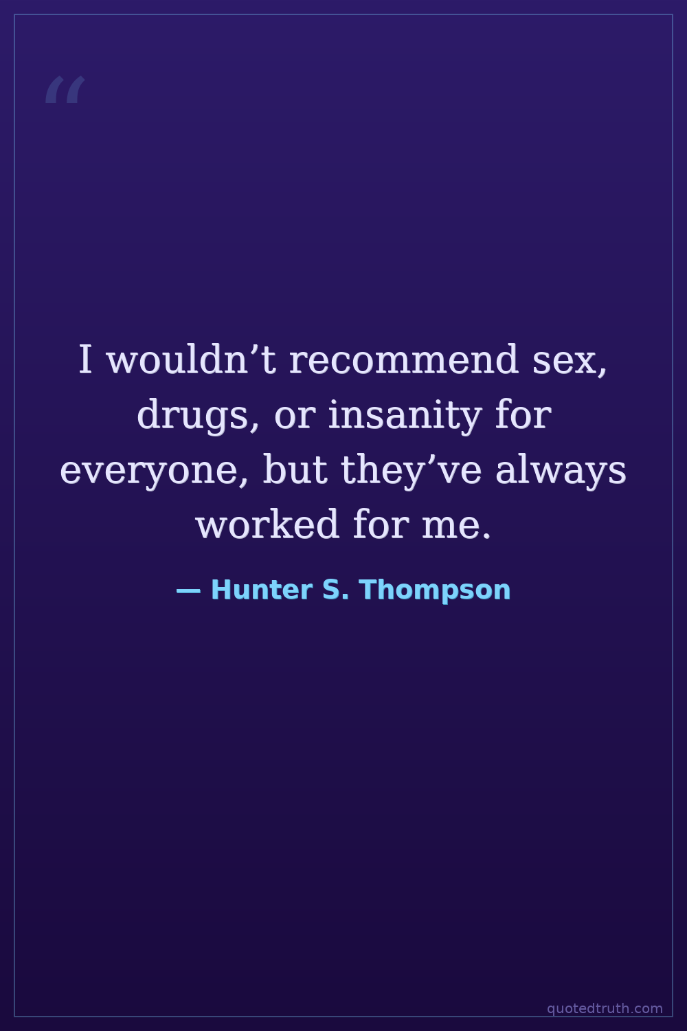 I wouldn’t recommend sex, drugs, or insanity for everyone, but they’ve always worked for me.