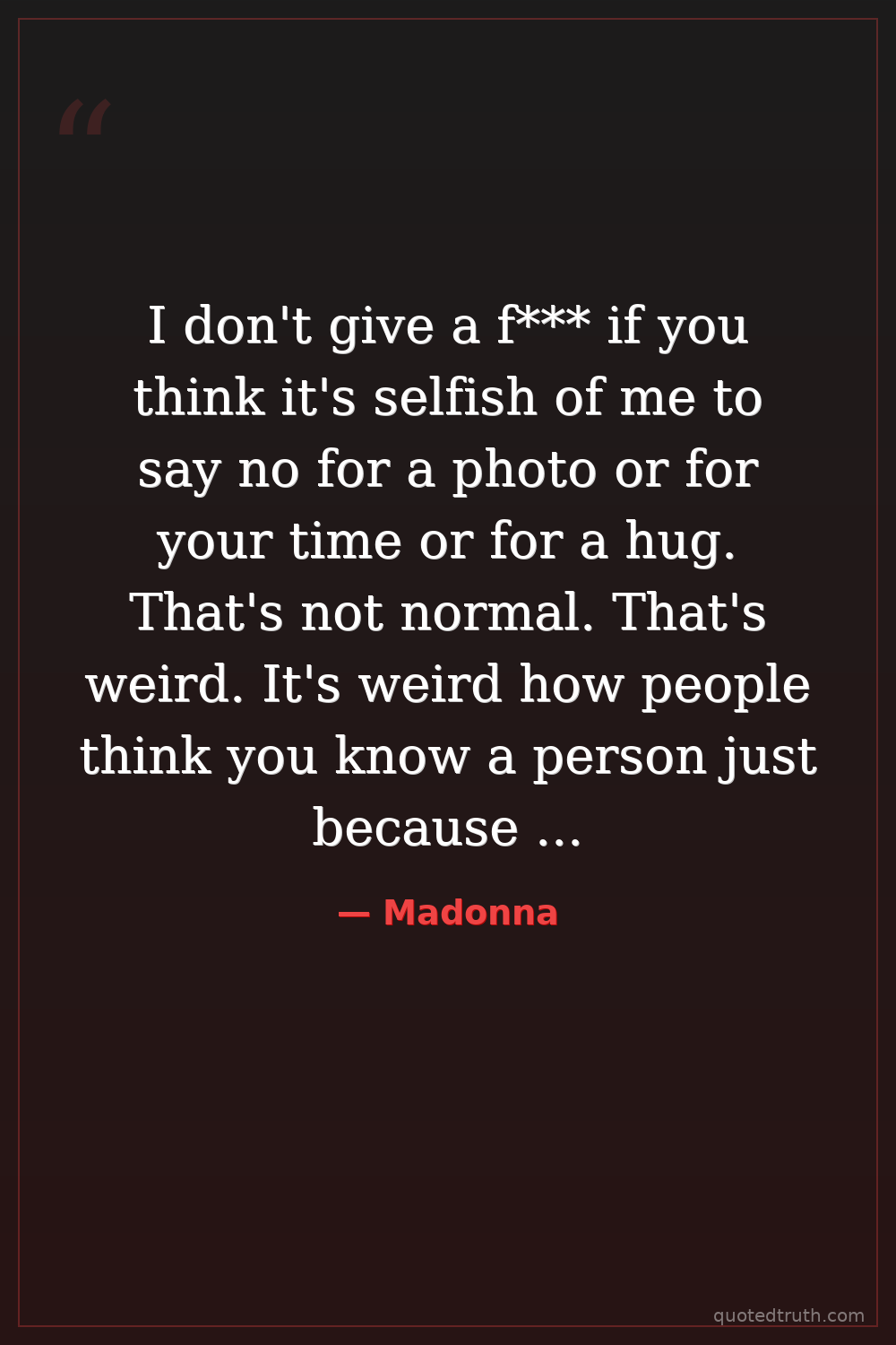 I don't give a f*** if you think it's selfish of me to say no for a photo or for your time or for a hug. That's not normal. That's weird. It's weird how people think you know a person just because you see them online or because you listen to the art they make. I'm allowed to say no to creepy behaviour.