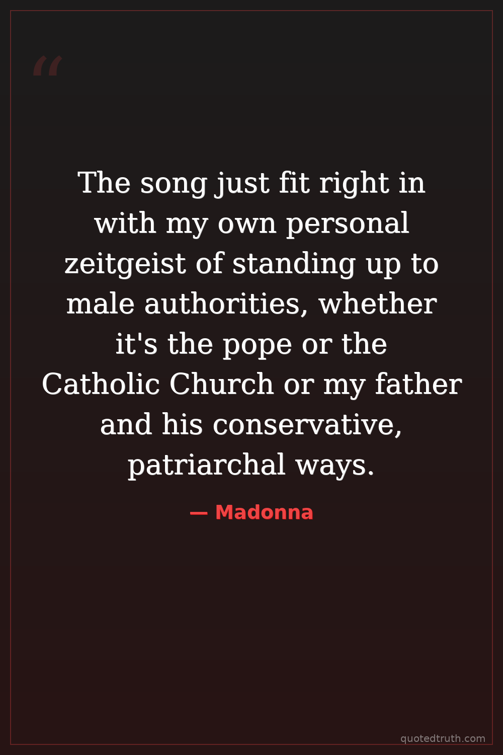 The song just fit right in with my own personal zeitgeist of standing up to male authorities, whether it's the pope or the Catholic Church or my father and his conservative, patriarchal ways.