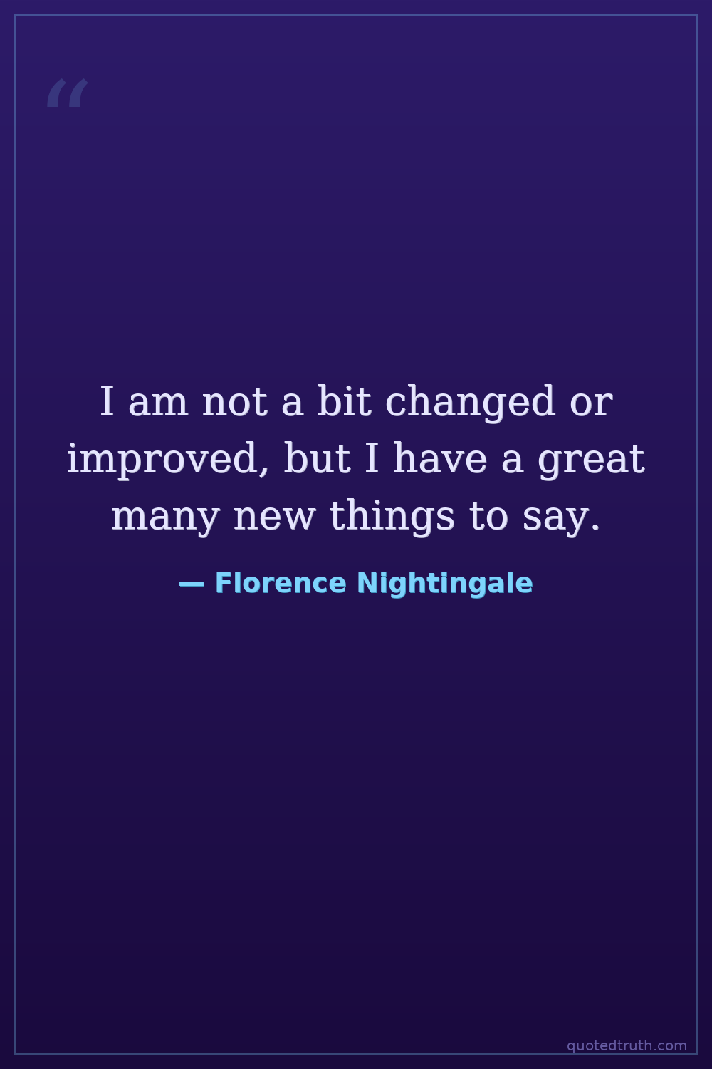 I am not a bit changed or improved, but I have a great many new things to say.