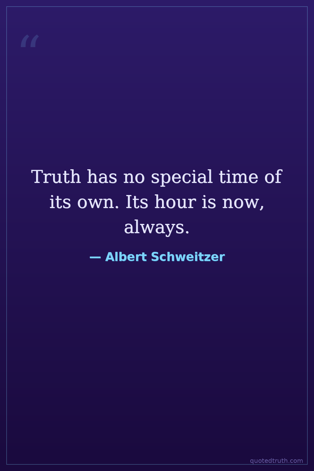 Truth has no special time of its own. Its hour is now, always.