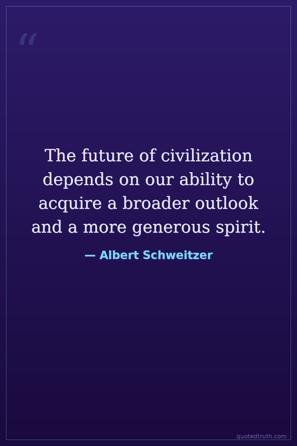 The future of civilization depends on our ability to acquire a broader outlook and a more generous spirit.