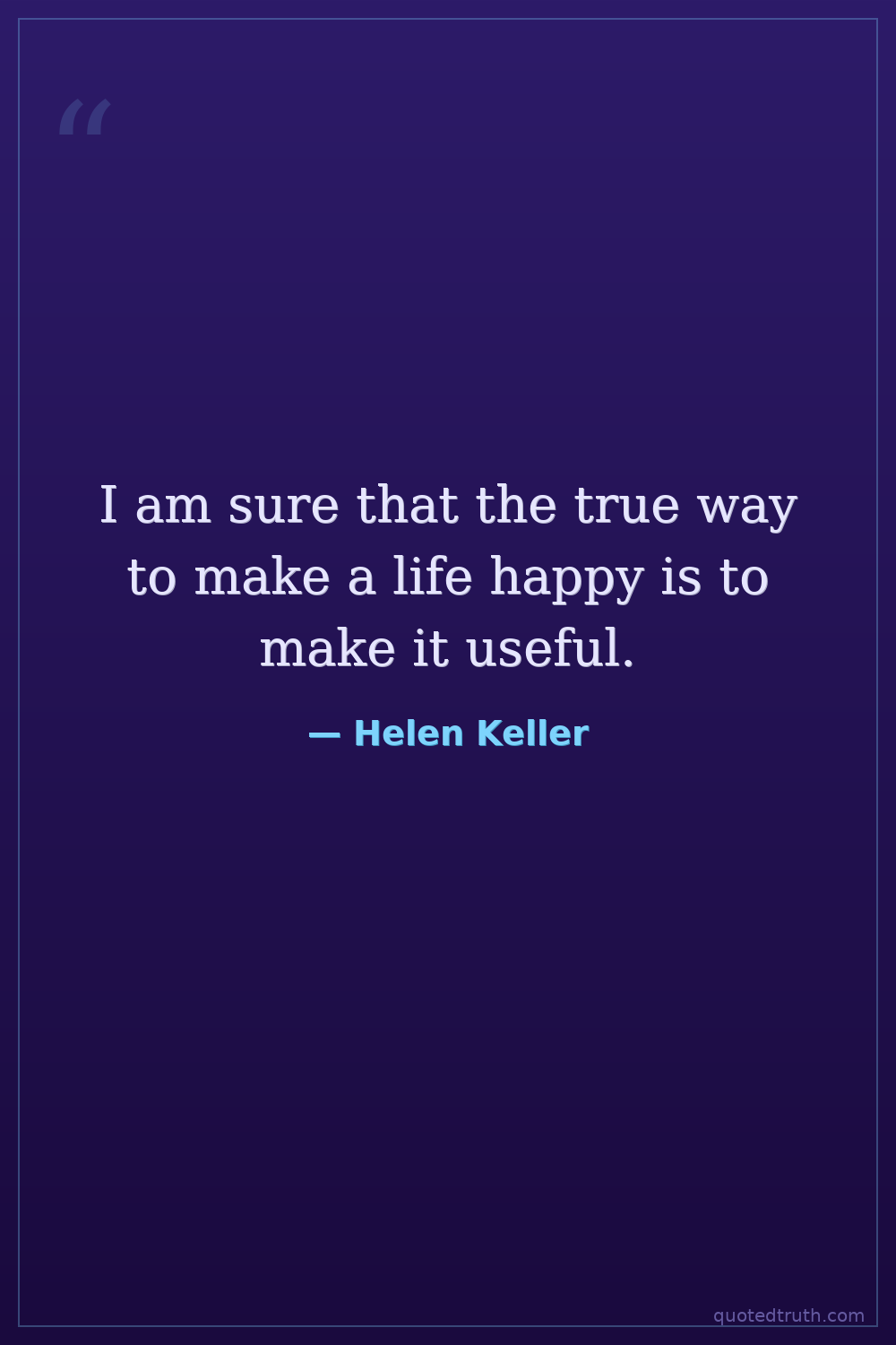 I am sure that the true way to make a life happy is to make it useful.