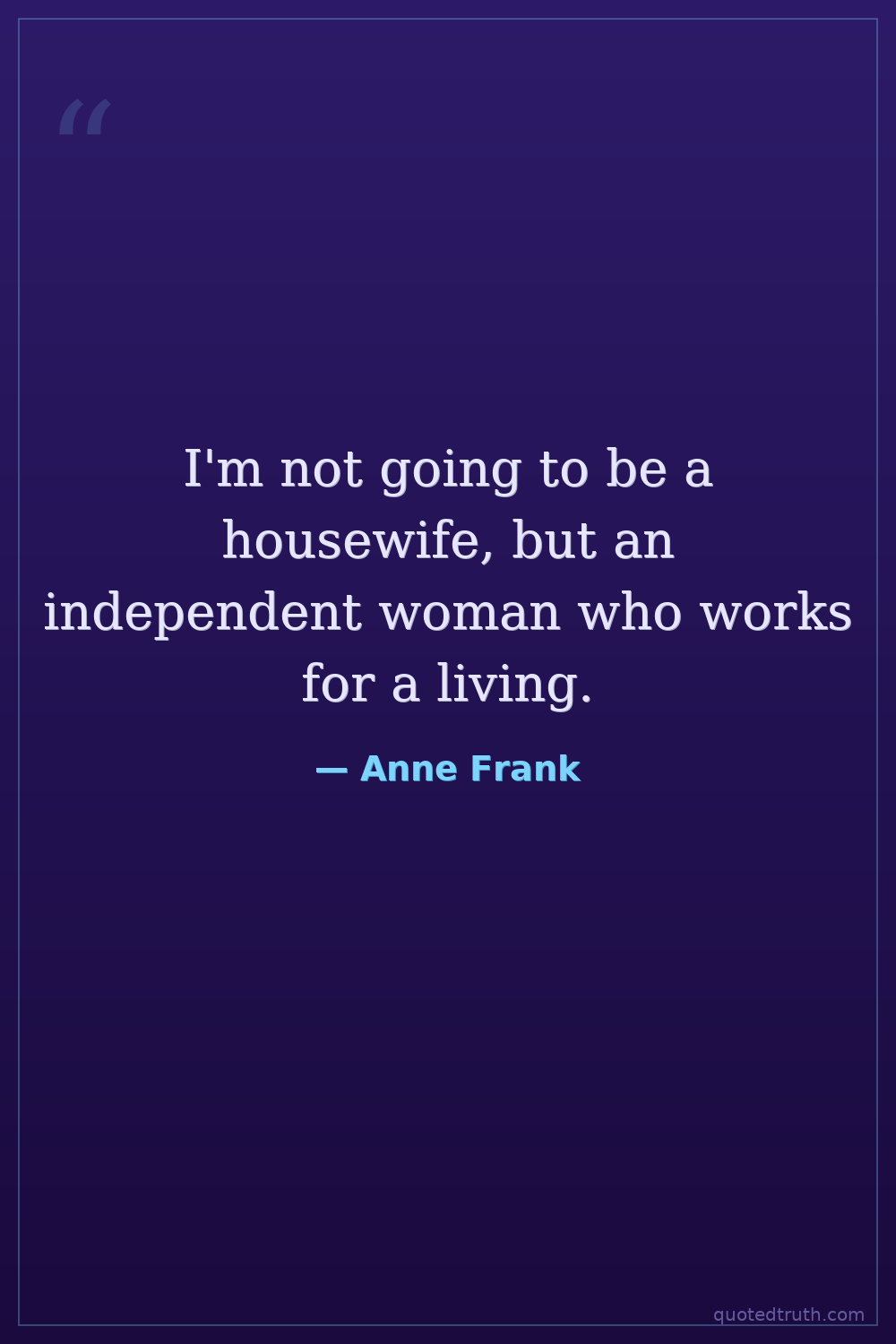 I'm not going to be a housewife, but an independent woman who works for a living.