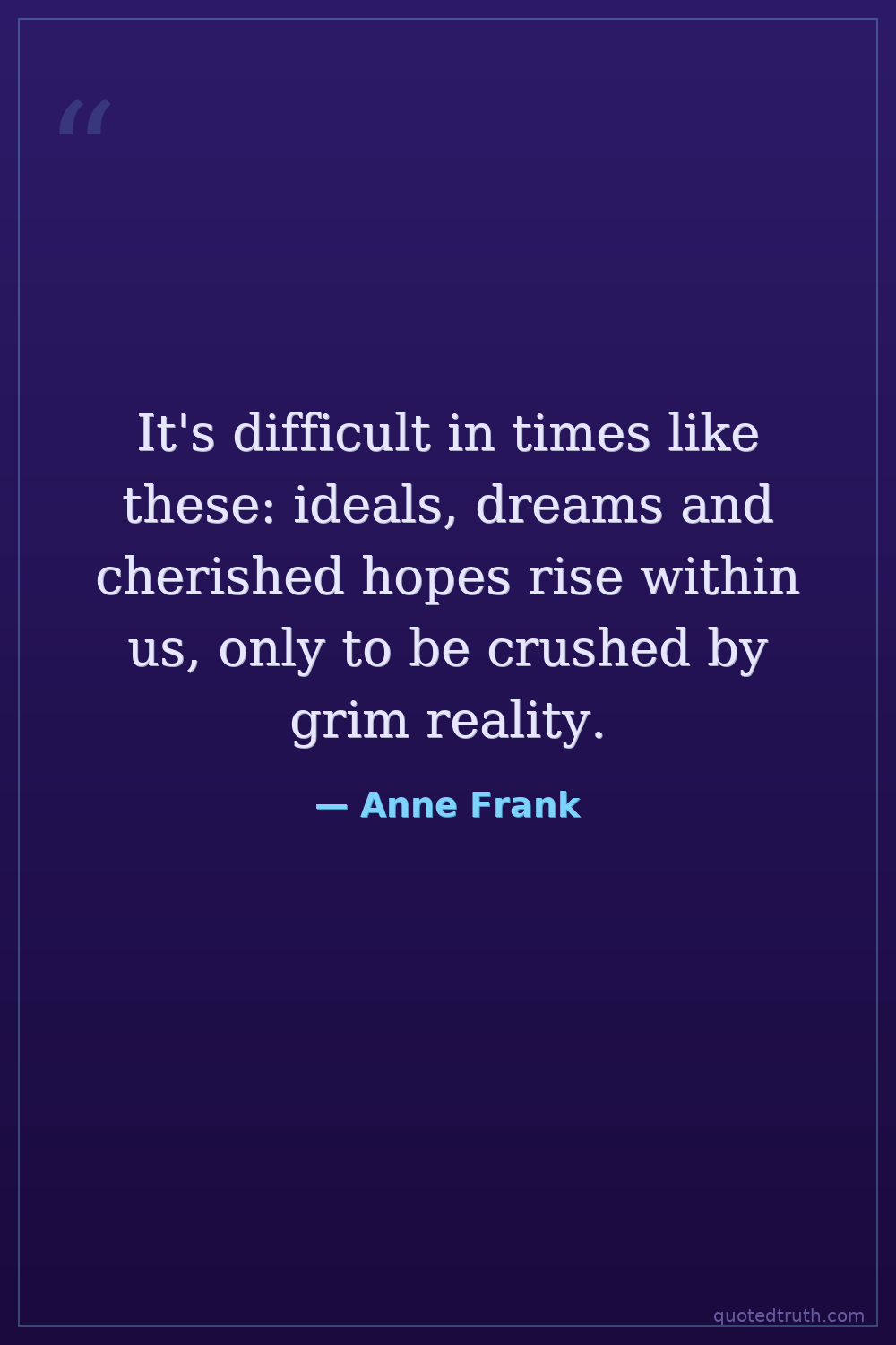 It's difficult in times like these: ideals, dreams and cherished hopes rise within us, only to be crushed by grim reality.