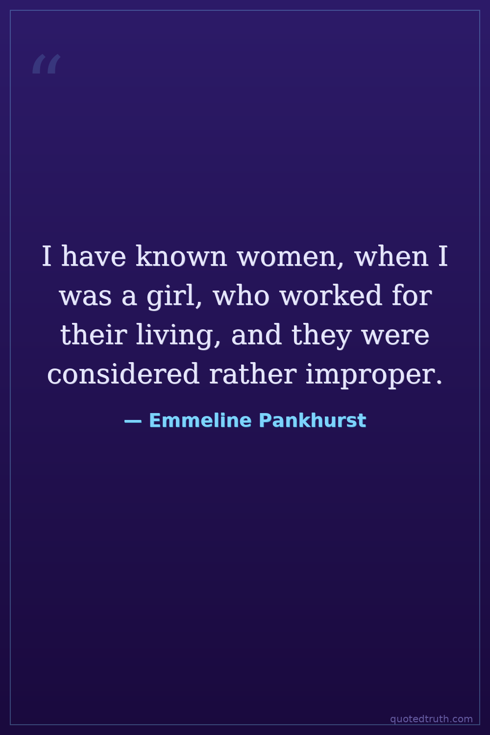 I have known women, when I was a girl, who worked for their living, and they were considered rather improper.