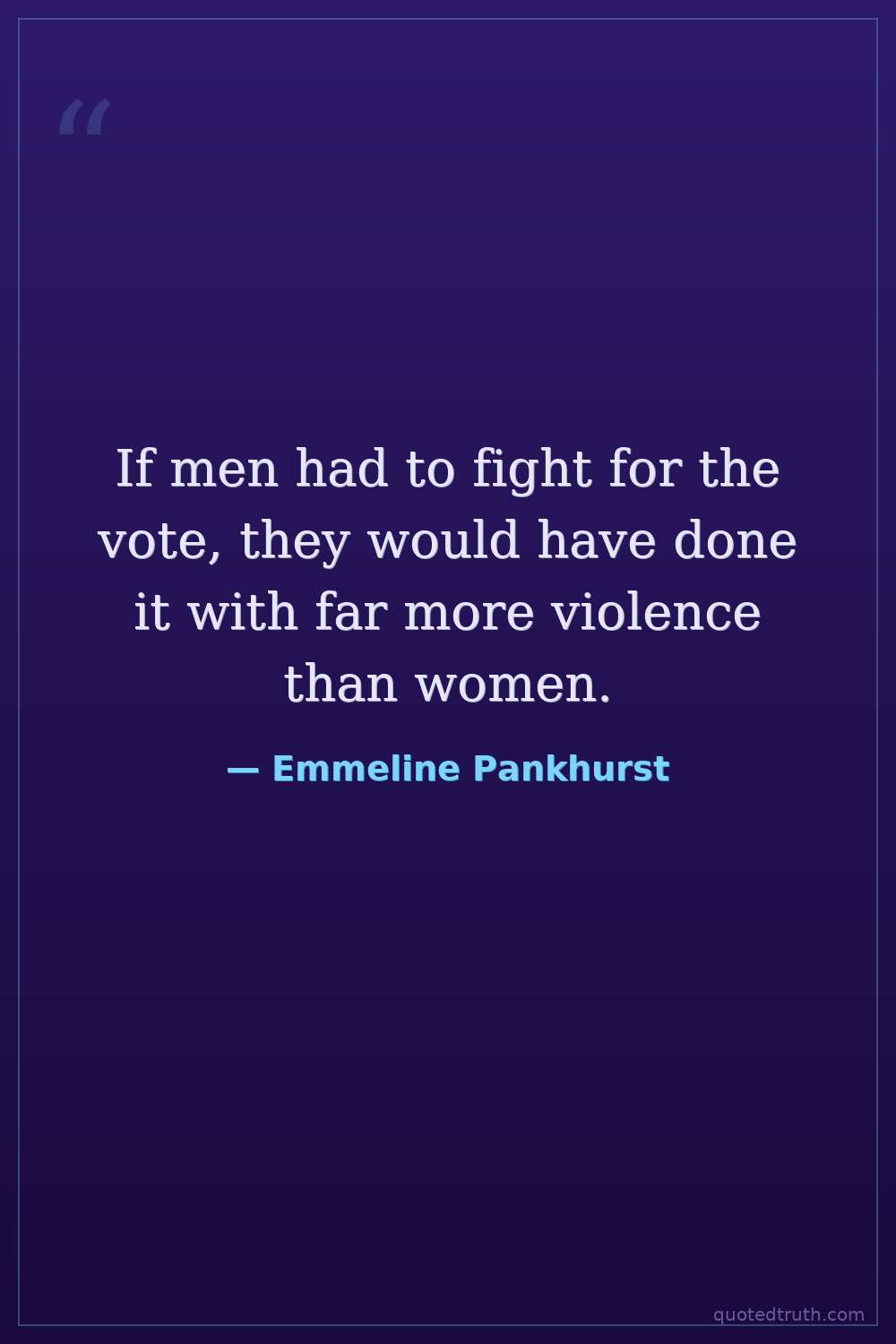 If men had to fight for the vote, they would have done it with far more violence than women.