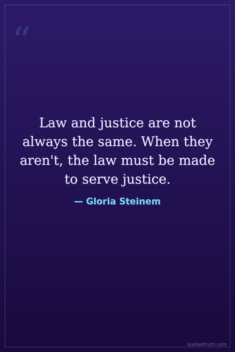 Law and justice are not always the same. When they aren't, the law must be made to serve justice.