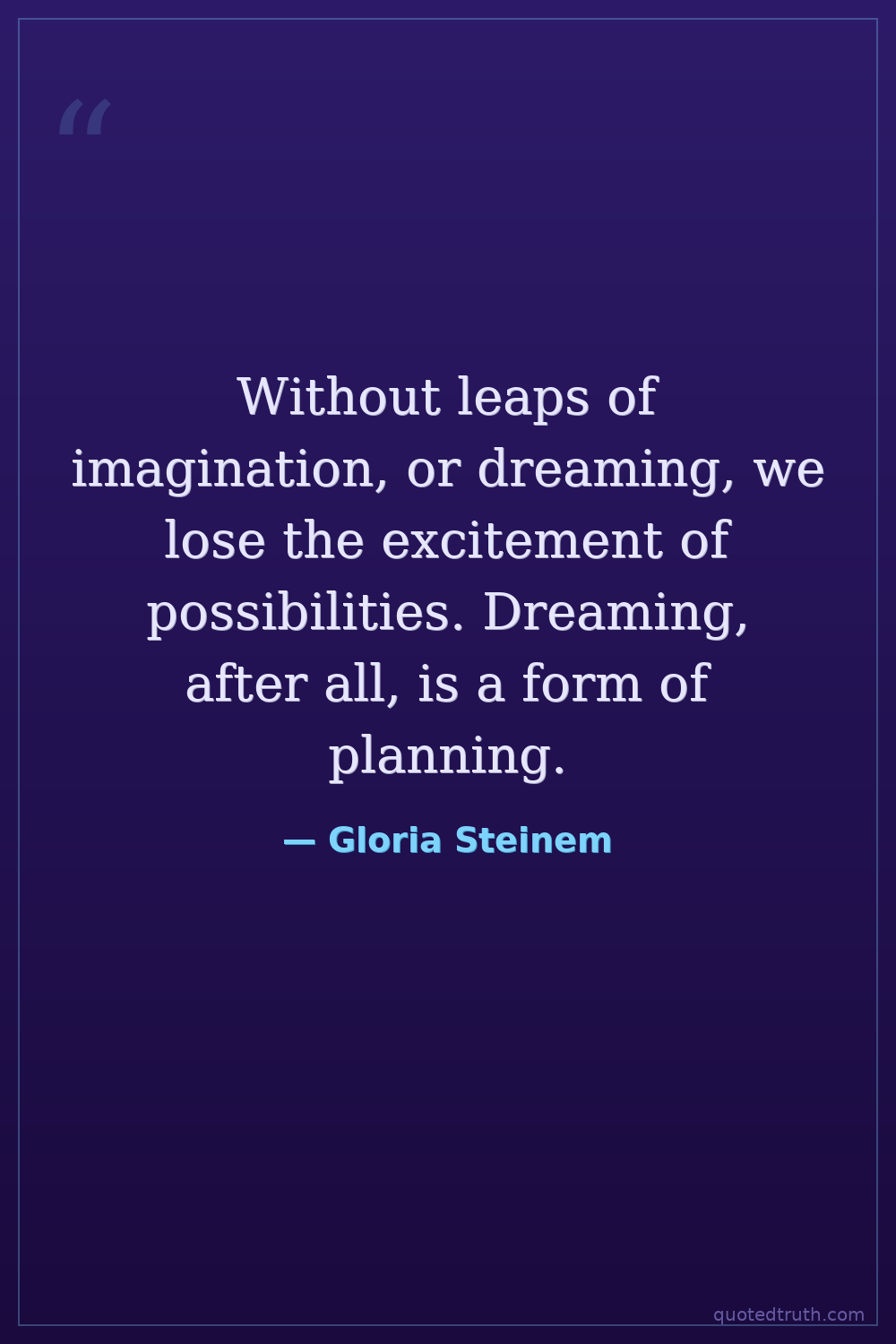 Without leaps of imagination, or dreaming, we lose the excitement of possibilities. Dreaming, after all, is a form of planning.