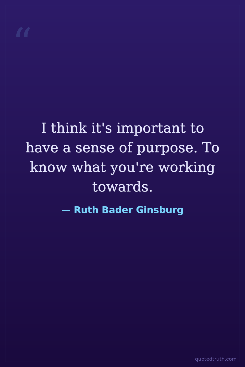 I think it's important to have a sense of purpose. To know what you're working towards.