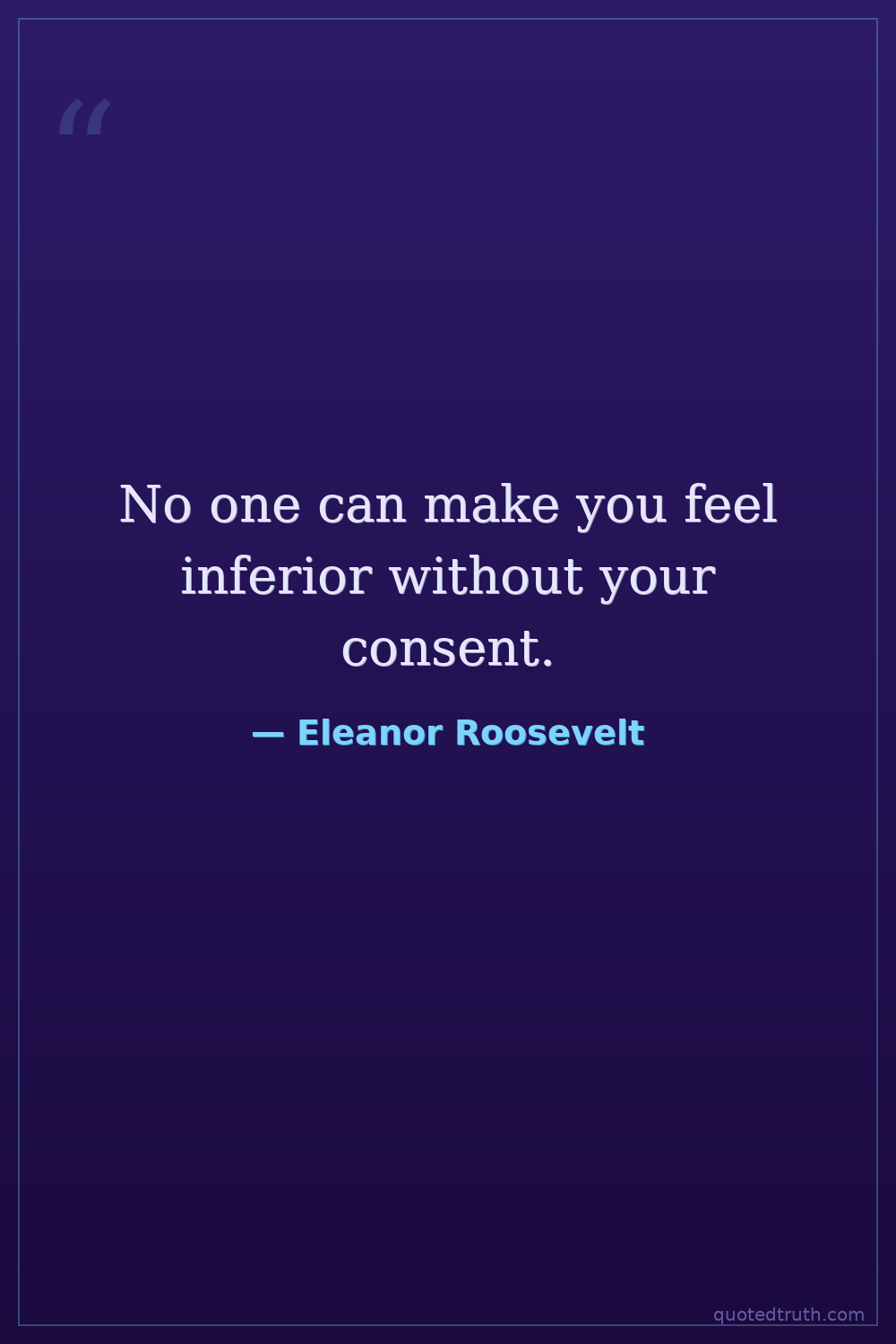 No one can make you feel inferior without your consent.