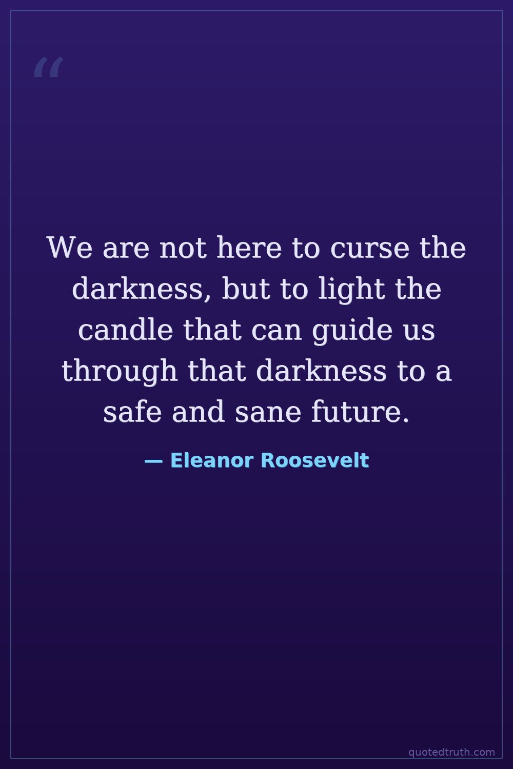 We are not here to curse the darkness, but to light the candle that can guide us through that darkness to a safe and sane future.