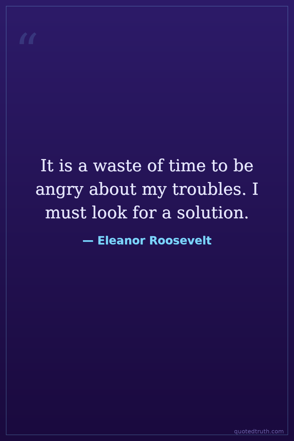 It is a waste of time to be angry about my troubles. I must look for a solution.