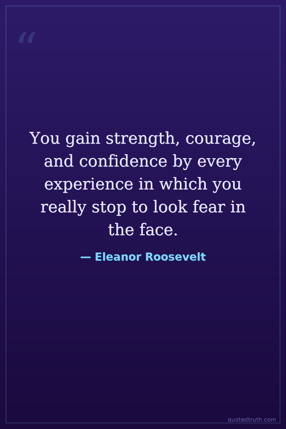 You gain strength, courage, and confidence by every experience in which you really stop to look fear in the face.