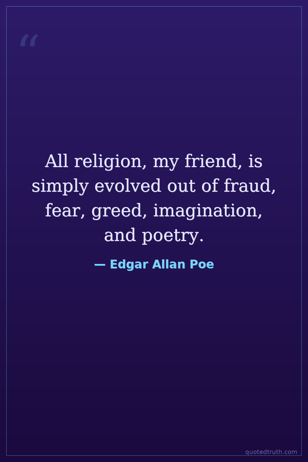 All religion, my friend, is simply evolved out of fraud, fear, greed, imagination, and poetry.