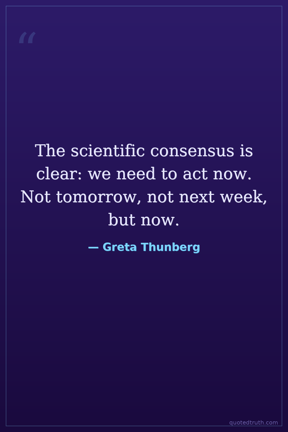 The scientific consensus is clear: we need to act now. Not tomorrow, not next week, but now.