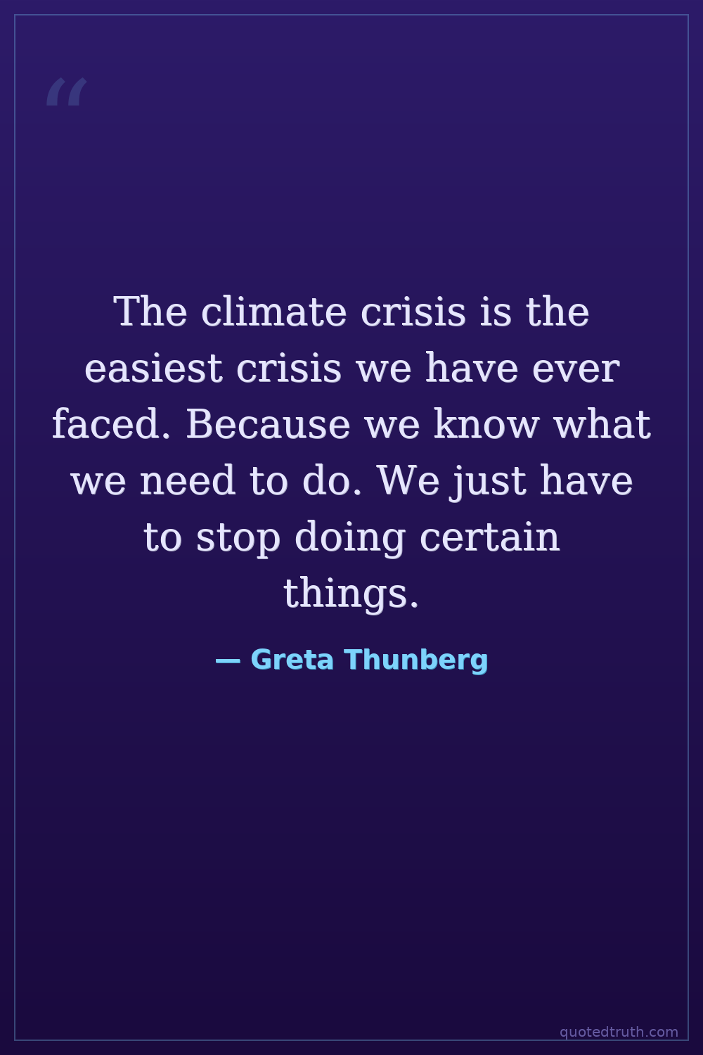 The climate crisis is the easiest crisis we have ever faced. Because we know what we need to do. We just have to stop doing certain things.