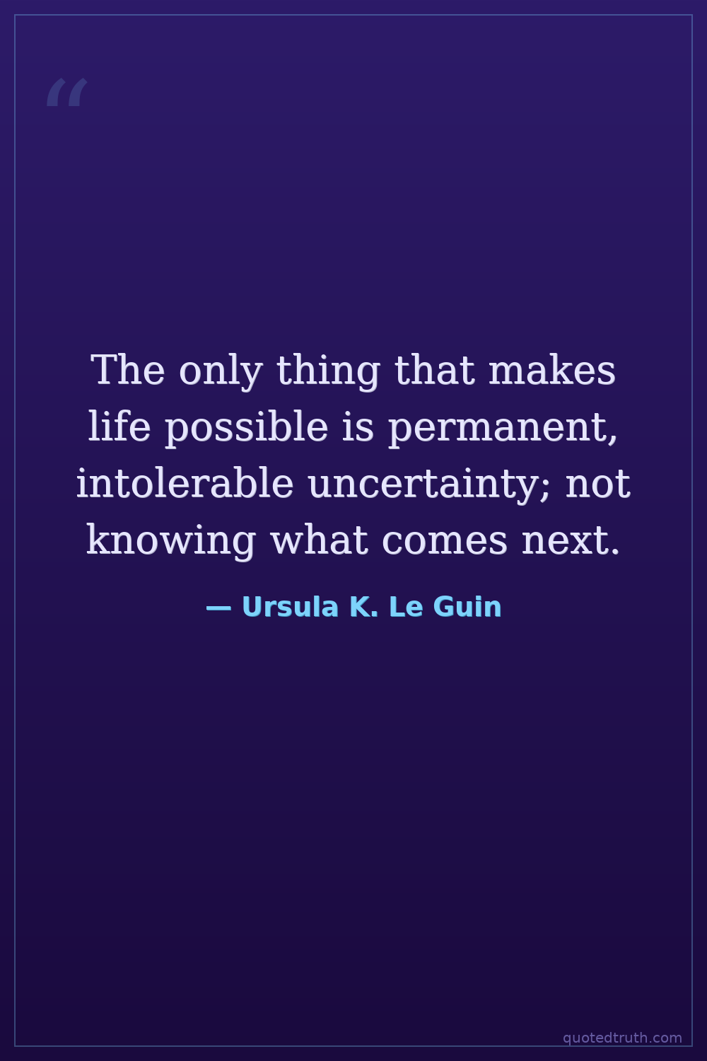 The only thing that makes life possible is permanent, intolerable uncertainty; not knowing what comes next.