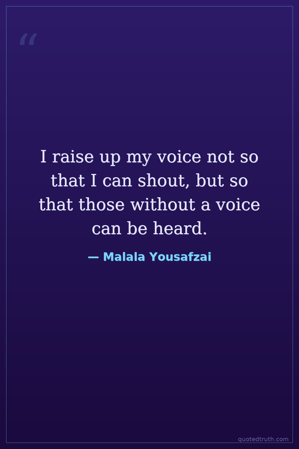 I raise up my voice not so that I can shout, but so that those without a voice can be heard.