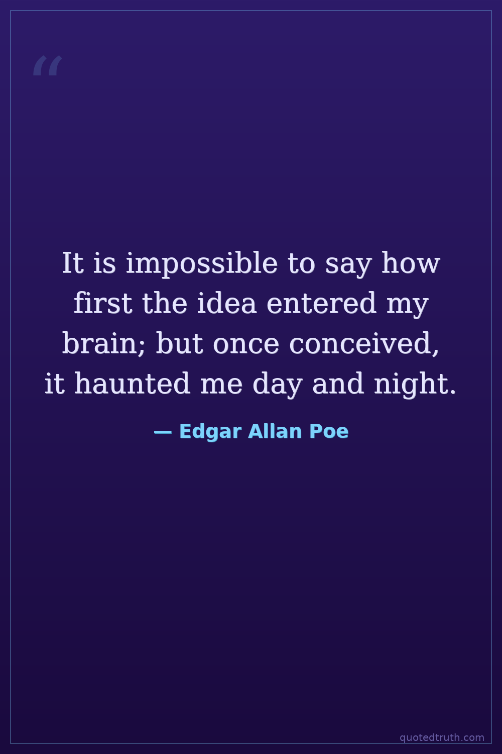 It is impossible to say how first the idea entered my brain; but once conceived, it haunted me day and night.
