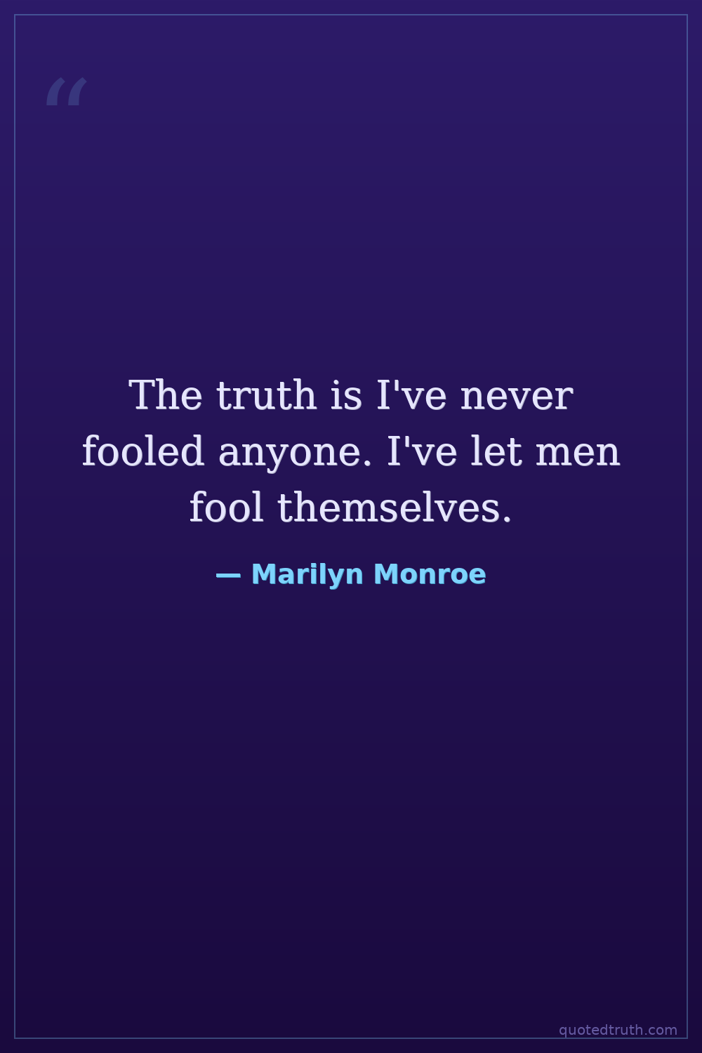 The truth is I've never fooled anyone. I've let men fool themselves.