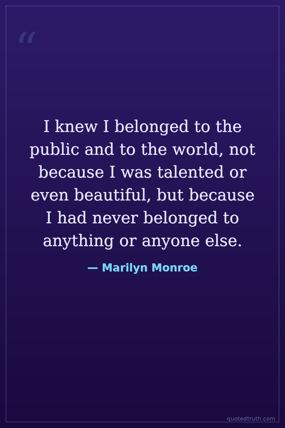 I knew I belonged to the public and to the world, not because I was talented or even beautiful, but because I had never belonged to anything or anyone else.