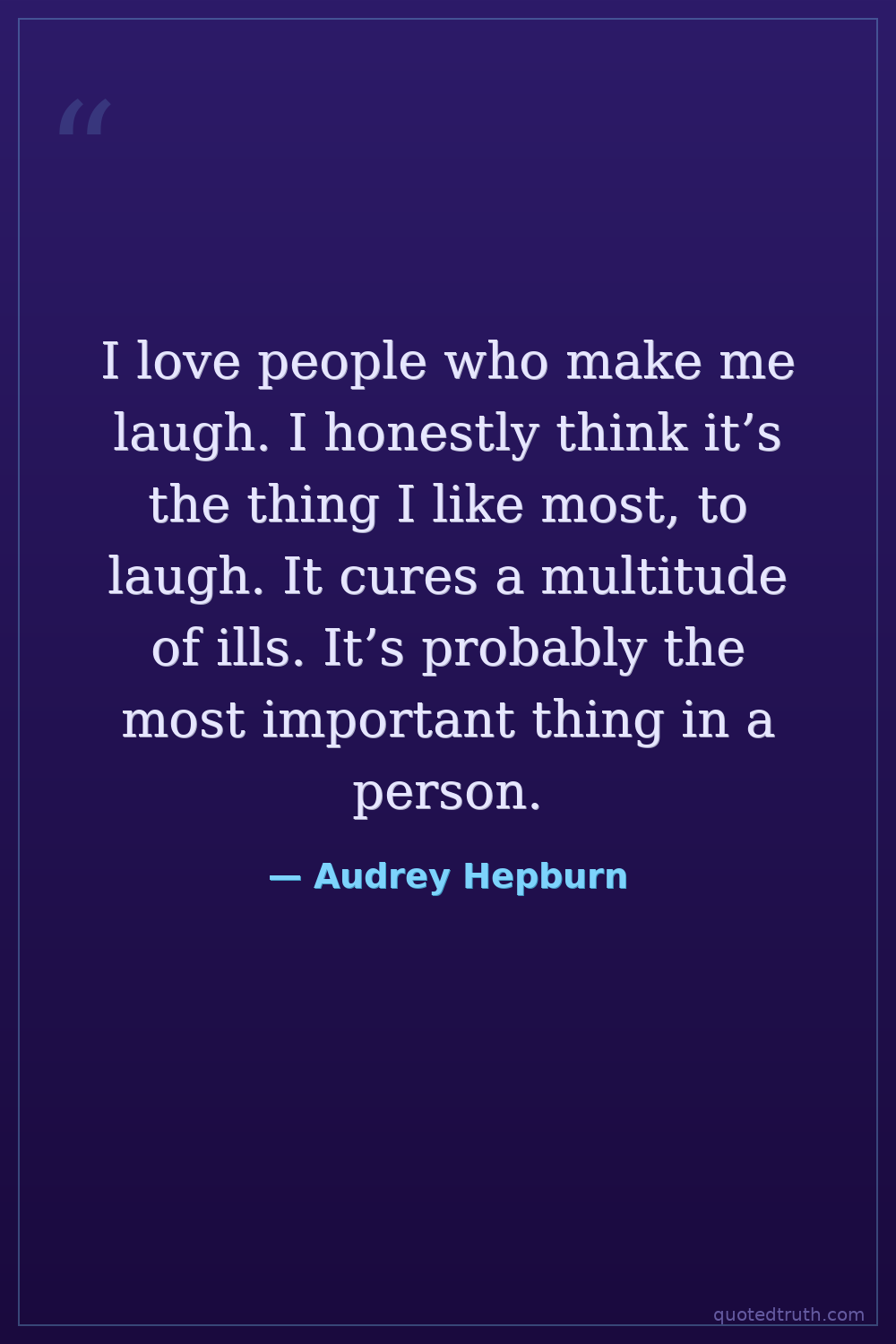 I love people who make me laugh. I honestly think it’s the thing I like most, to laugh. It cures a multitude of ills. It’s probably the most important thing in a person.