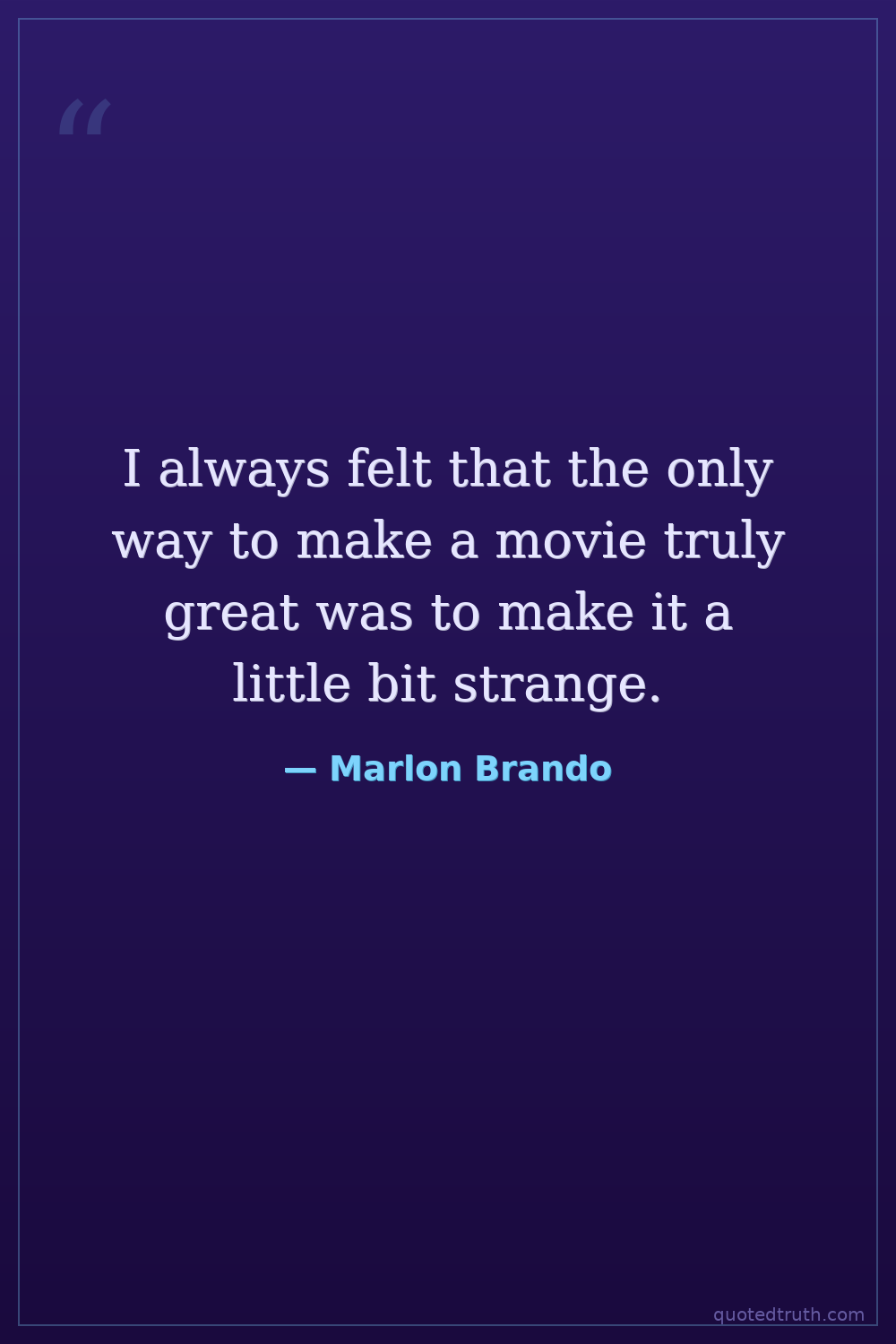 I always felt that the only way to make a movie truly great was to make it a little bit strange.