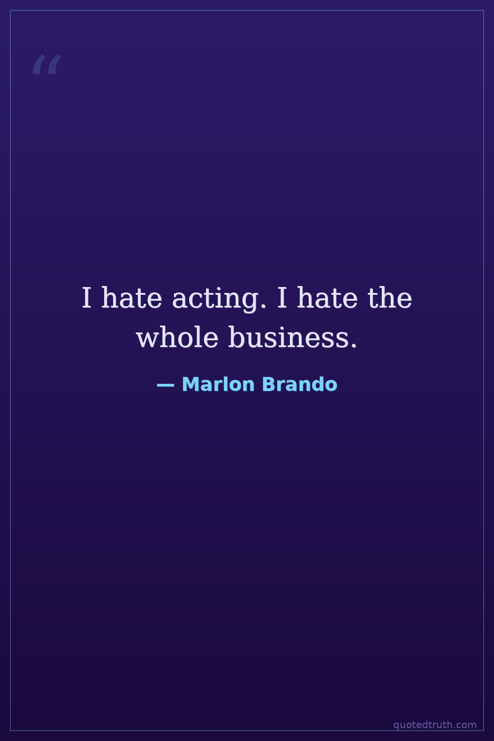 I hate acting. I hate the whole business.