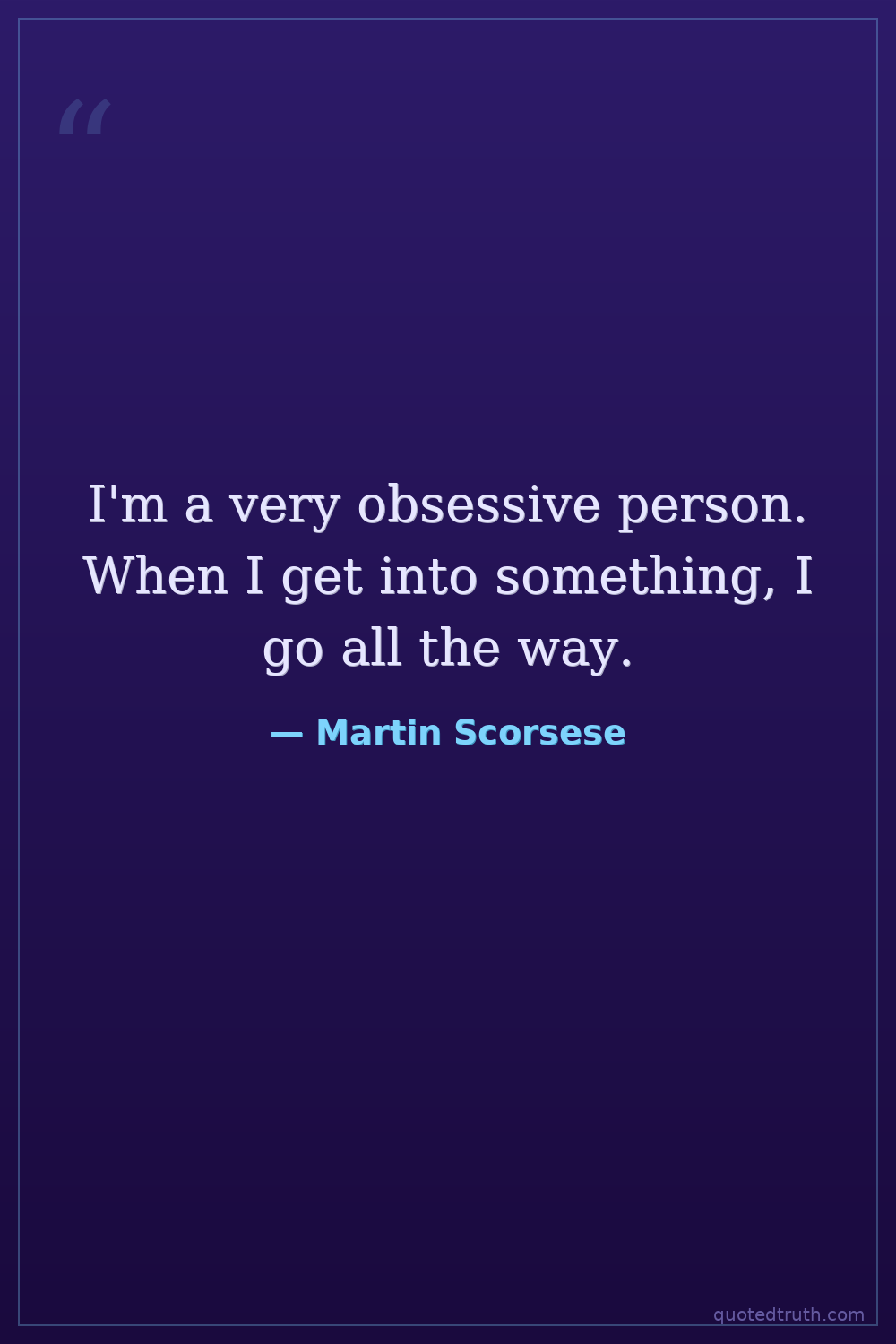 I'm a very obsessive person. When I get into something, I go all the way.