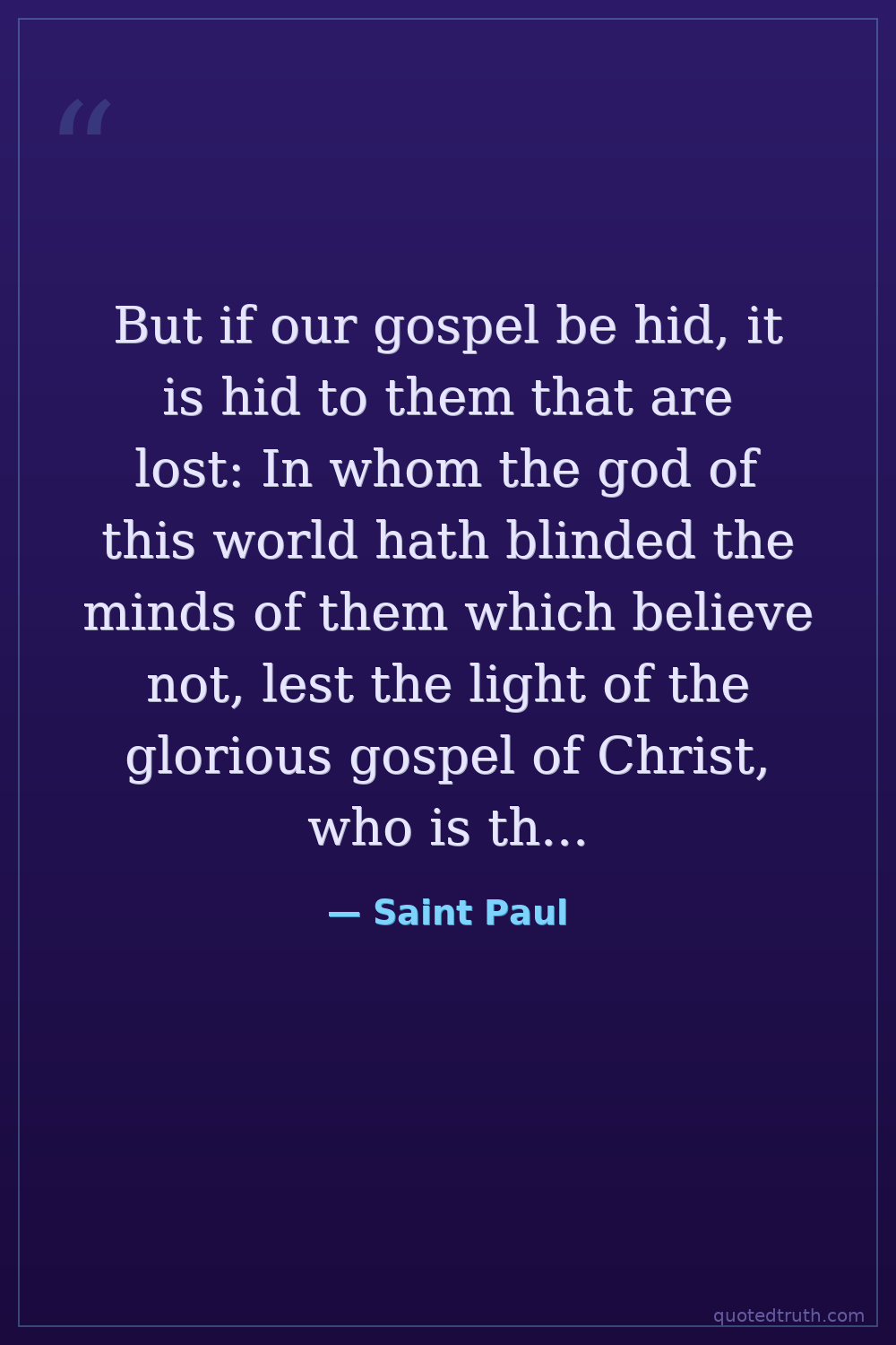 But if our gospel be hid, it is hid to them that are lost: In whom the god of this world hath blinded the minds of them which believe not, lest the light of the glorious gospel of Christ, who is the image of God, should shine unto them.