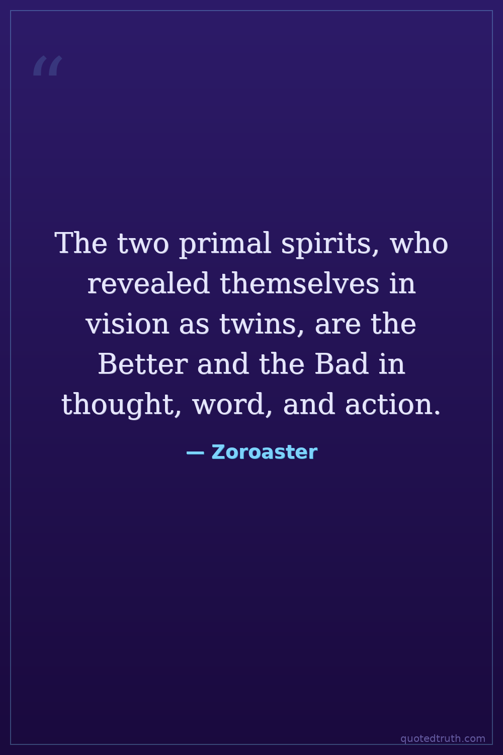The two primal spirits, who revealed themselves in vision as twins, are the Better and the Bad in thought, word, and action.