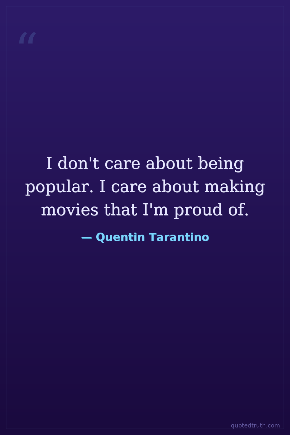 I don't care about being popular. I care about making movies that I'm proud of.