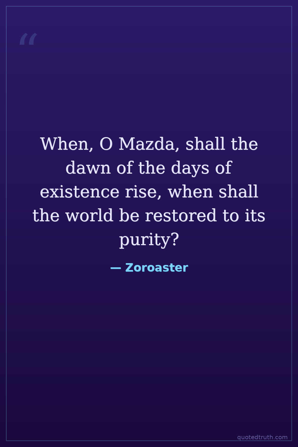 When, O Mazda, shall the dawn of the days of existence rise, when shall the world be restored to its purity?