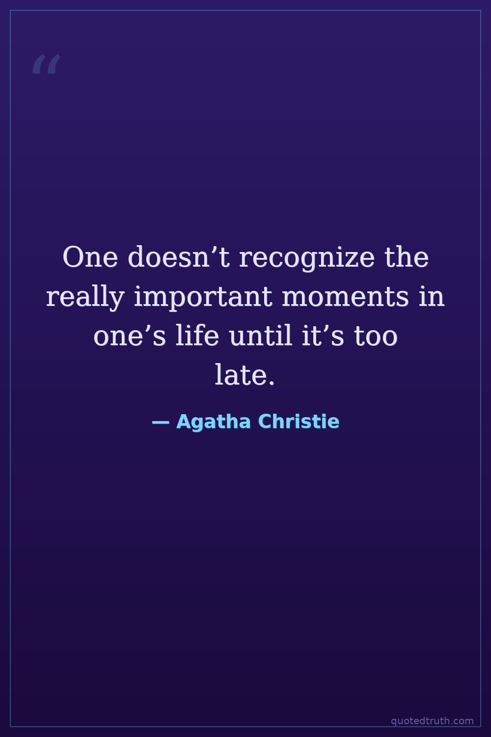 One doesn’t recognize the really important moments in one’s life until it’s too late.