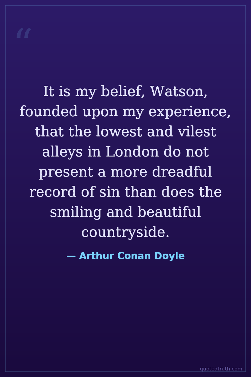 It is my belief, Watson, founded upon my experience, that the lowest and vilest alleys in London do not present a more dreadful record of sin than does the smiling and beautiful countryside.