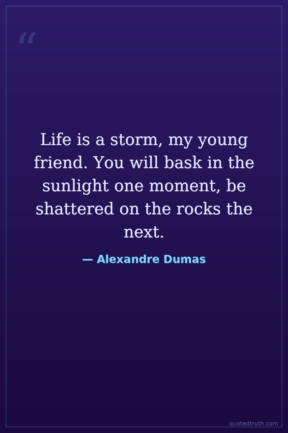 Life is a storm, my young friend. You will bask in the sunlight one moment, be shattered on the rocks the next.