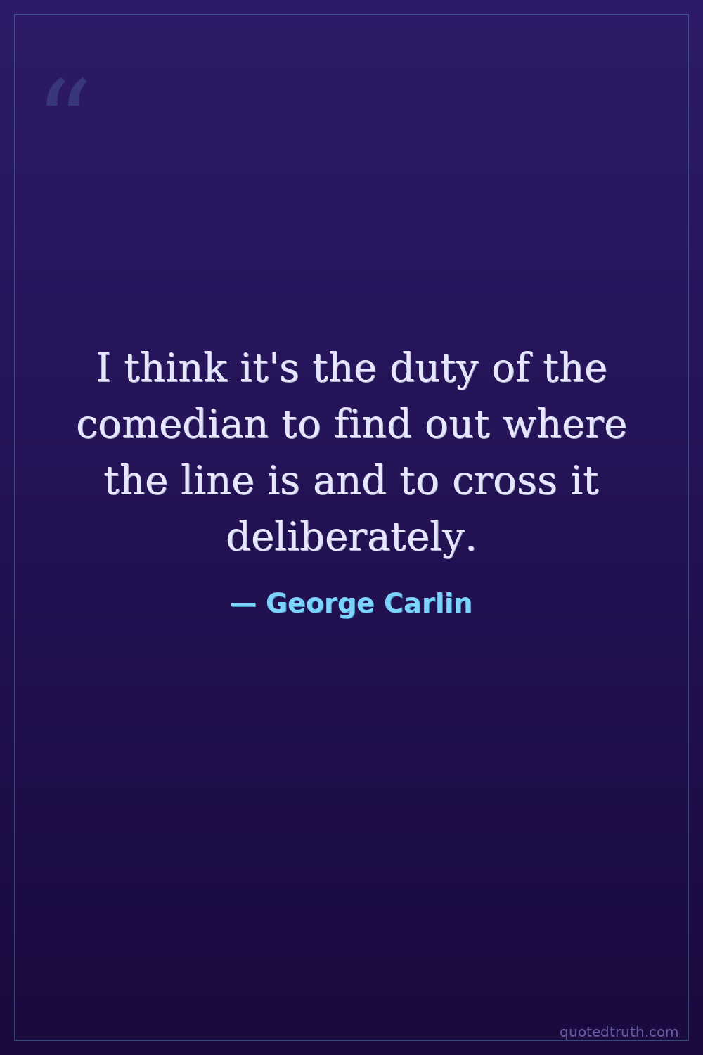 I think it's the duty of the comedian to find out where the line is and to cross it deliberately.