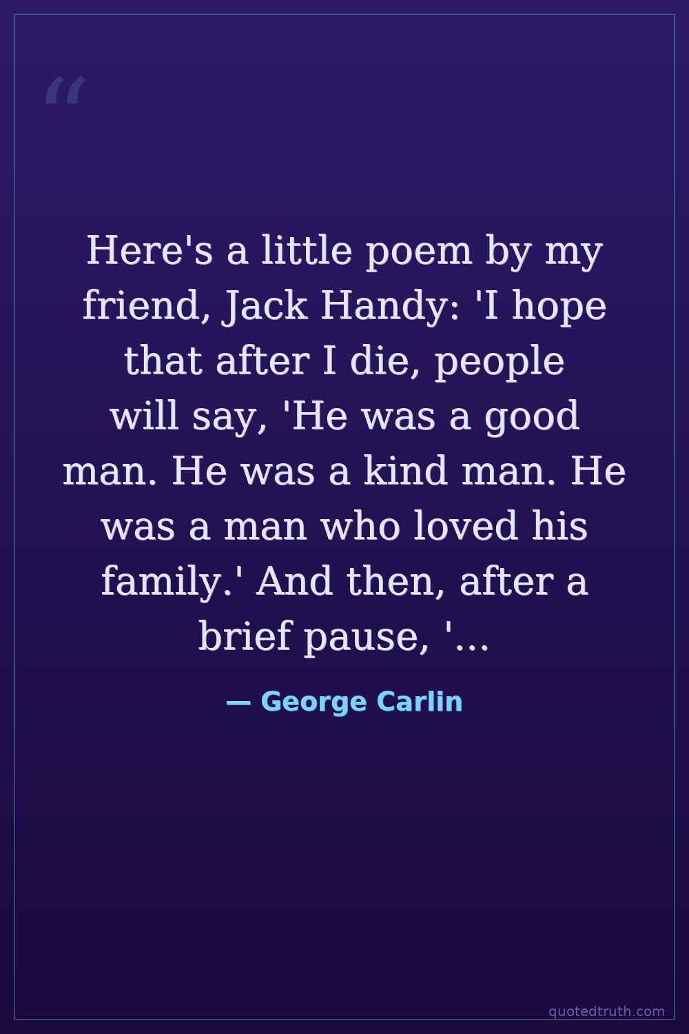 Here's a little poem by my friend, Jack Handy: 'I hope that after I die, people will say, 'He was a good man. He was a kind man. He was a man who loved his family.' And then, after a brief pause, 'But he was no George Carlin.'