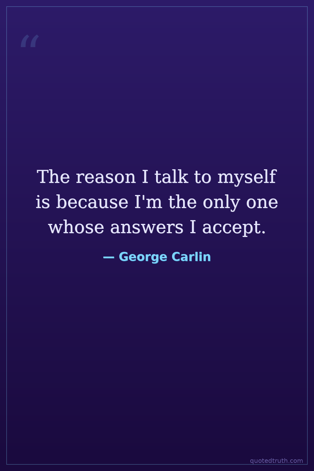 The reason I talk to myself is because I'm the only one whose answers I accept.