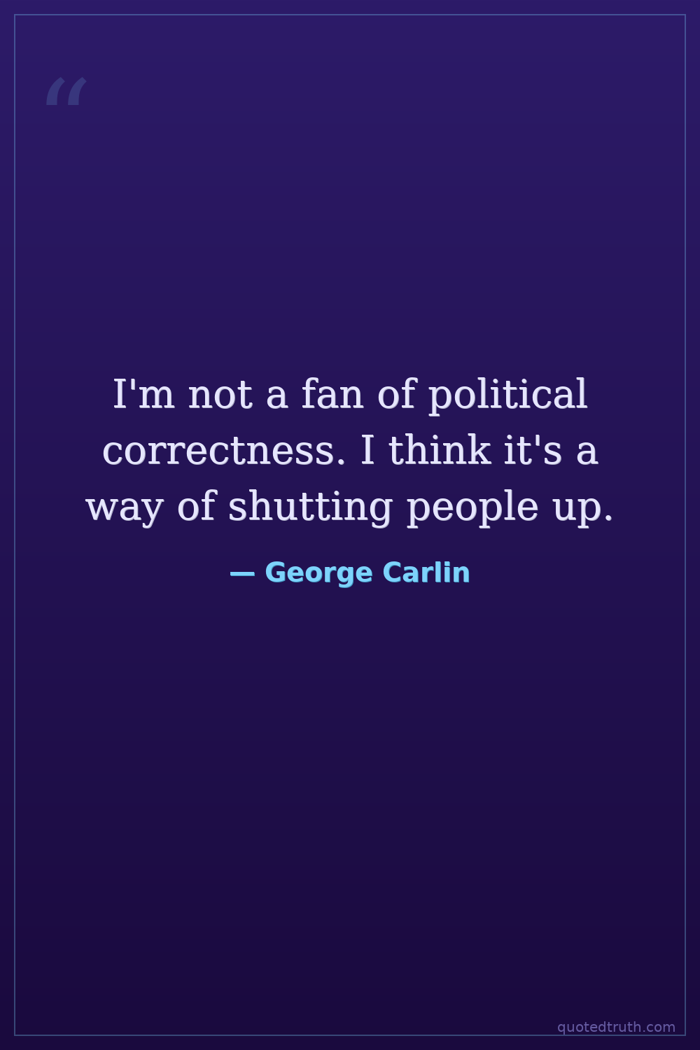 I'm not a fan of political correctness. I think it's a way of shutting people up.
