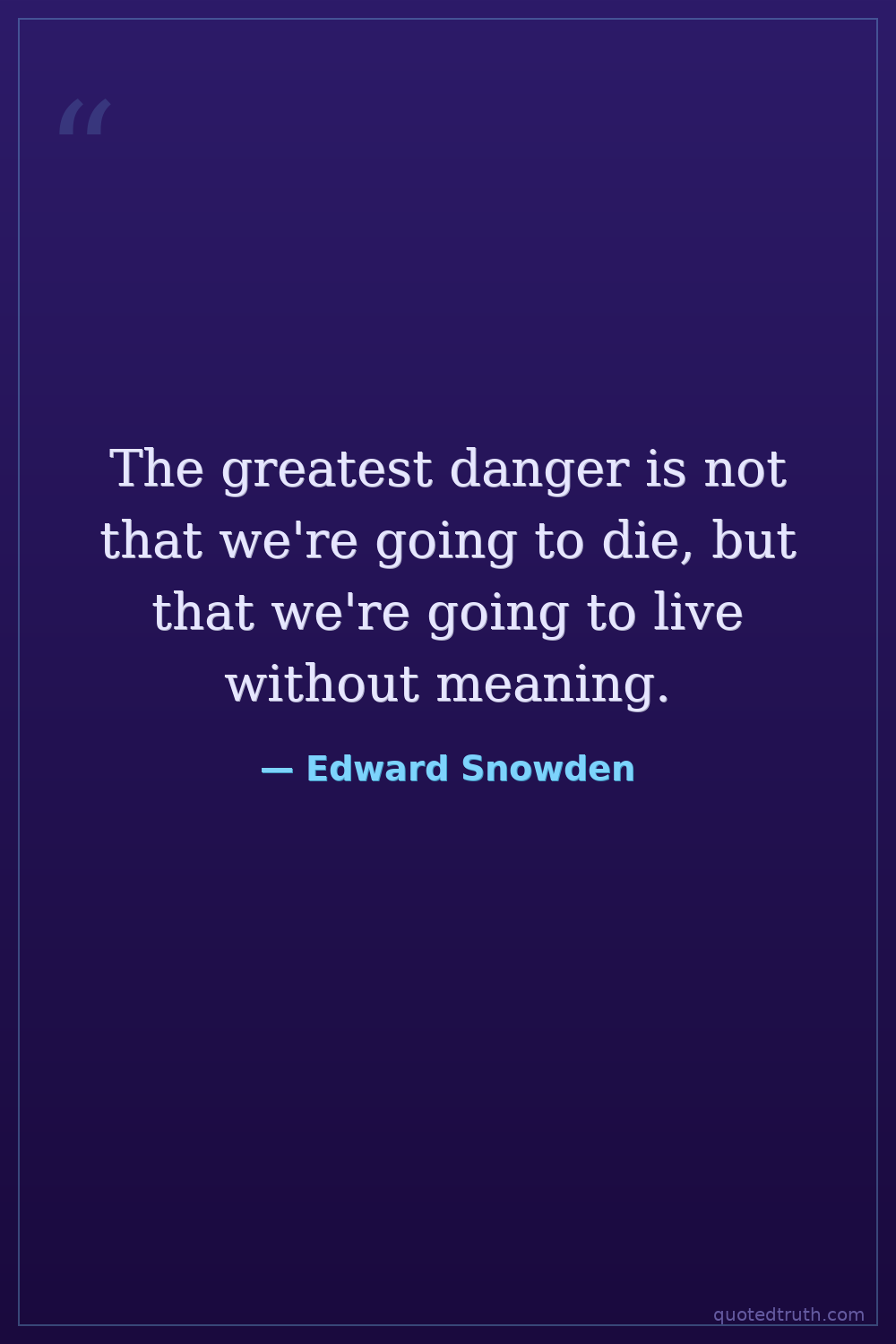The greatest danger is not that we're going to die, but that we're going to live without meaning.