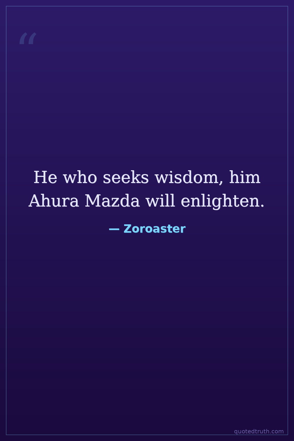 He who seeks wisdom, him Ahura Mazda will enlighten.