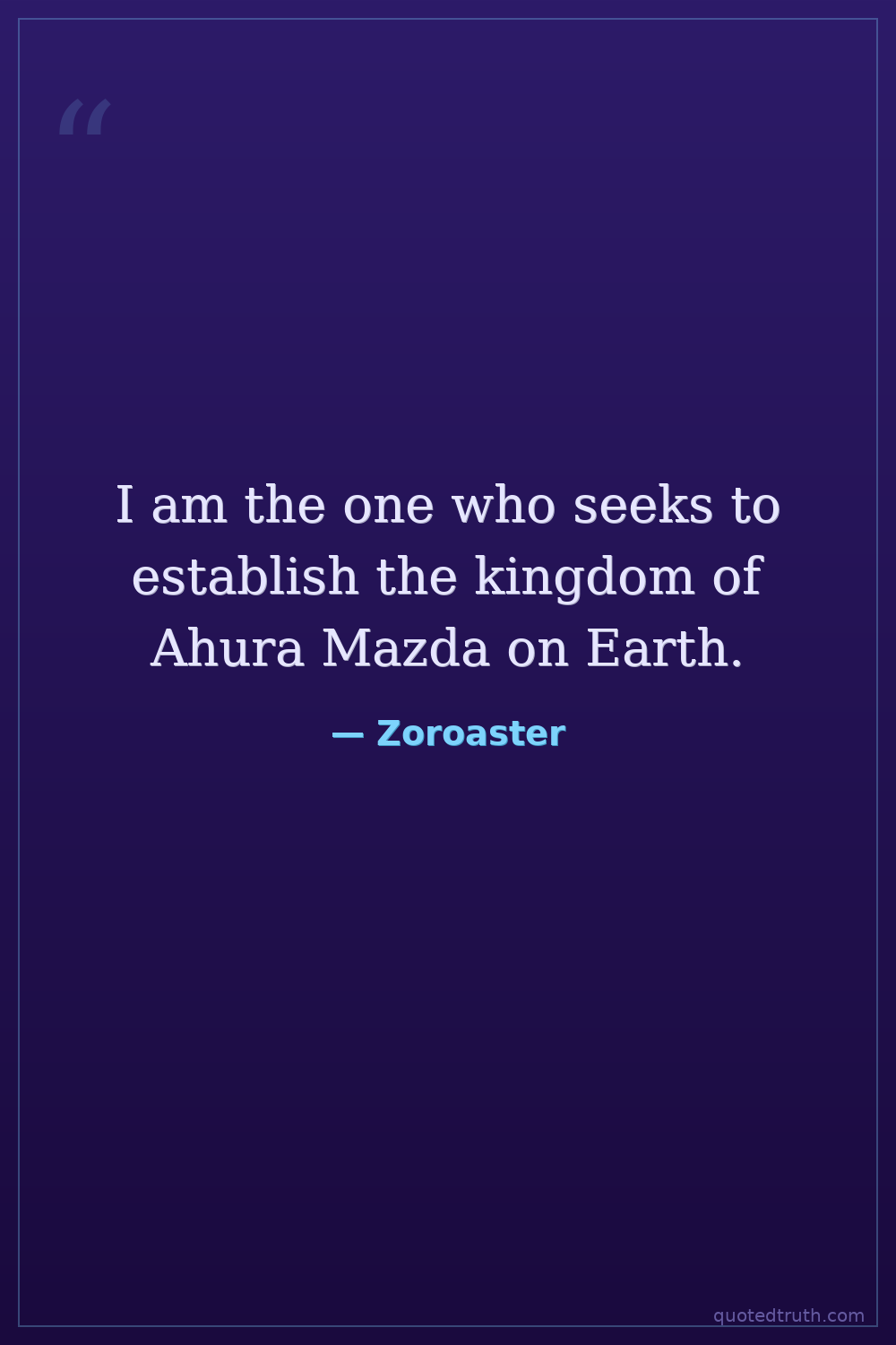 I am the one who seeks to establish the kingdom of Ahura Mazda on Earth.