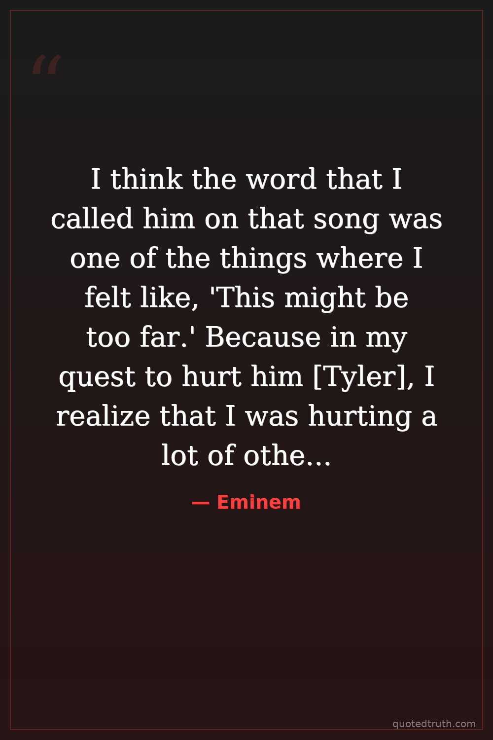 I think the word that I called him on that song was one of the things where I felt like, 'This might be too far.' Because in my quest to hurt him [Tyler], I realize that I was hurting a lot of other people by saying it.